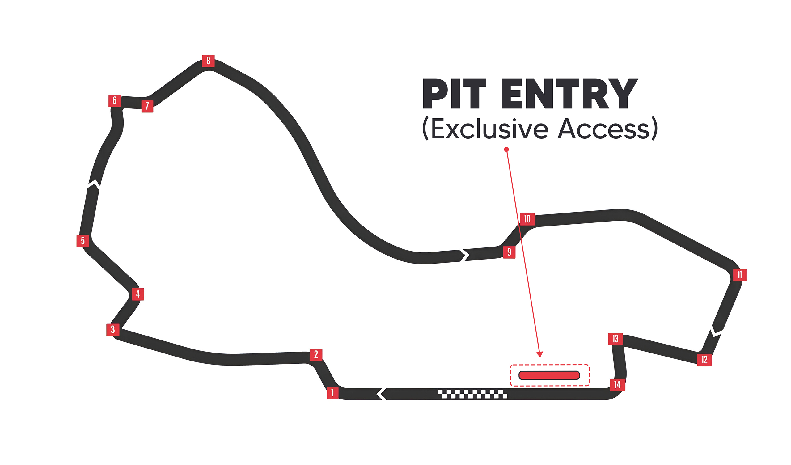 • Pit Lane Entry Views – Overlook the entry to Pit Lane as cars surge out of Turn 14.